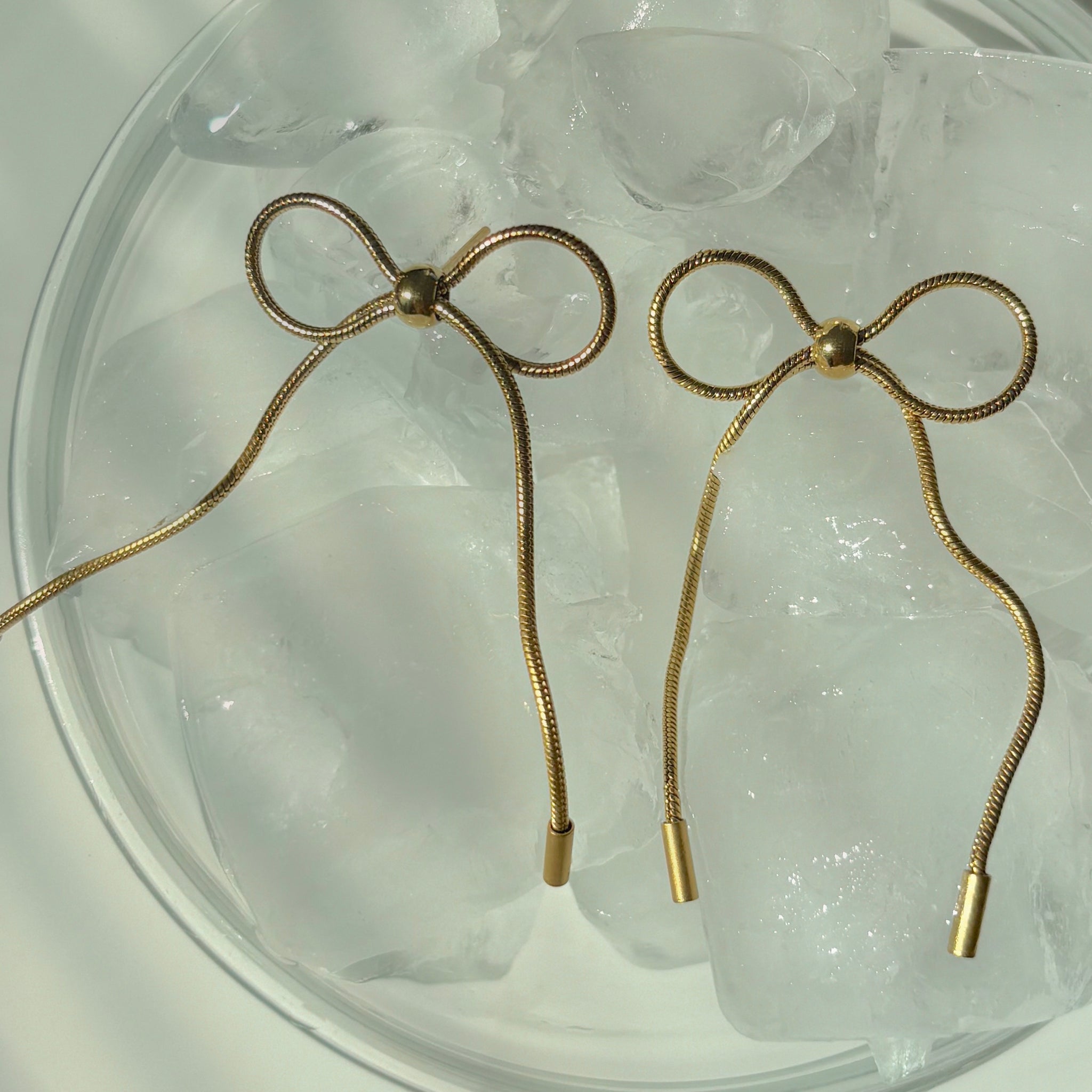 Silver or 18k gold plated stainless steel bow earrings. Non-tarnish, Hypo-allergenic, Waterproof.